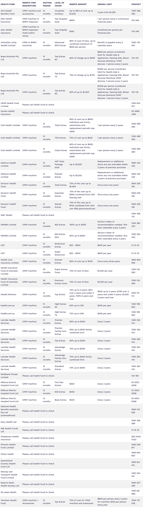 If you have extras cover, your private health insurance may pay a rebate towards the cost of your CPAP machine. The amount varies considerably between funds and also depends on your level of extras cover. Some funds will also cover part of the cost of the mask. Some funds require a letter of recommendation from your doctor. All require an eligible invoice.